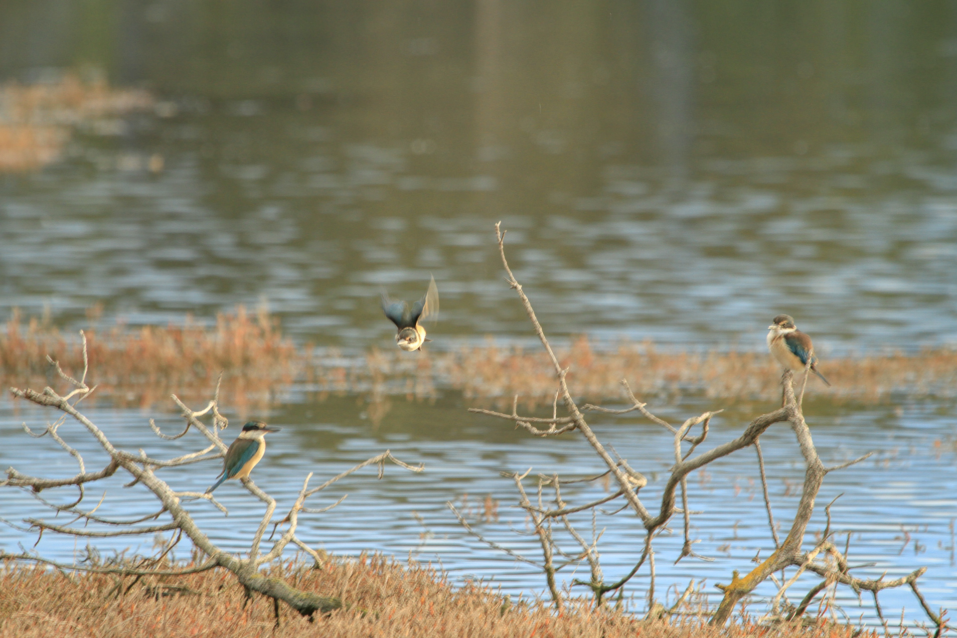 I recently spent a few weeks in New Zealand, mainly around Napier on the North Island. I walked around the wetland area, known as Ahuriri Estuary. Whilst it is better known for its migratory birds, waders and shore birds, on two occasions I observed these Sacred Kingfishers. They are also known by their Māori name, Kōtare. One day there were four of them fishing and scavenging from the walkways and shrubs near the water, and the other time two solo birds perched higher in the trees. They are beautiful birds and a joy to watch. I hope my photos do them justice.